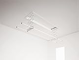 リモコン操作で自動で昇降。干す時には低く、掛けたら電動で上げる事が出来る。スペースを無駄にせず快適に部屋干し出来る。